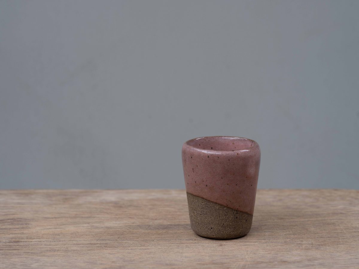 Esmaltado na cor Rosa Bauhaus por dentro e por fora — um rosa queimado com pequenas pintas escuras e variações sutis de tonalidade, características do esmalte aplicado à mão e da queima a gás.