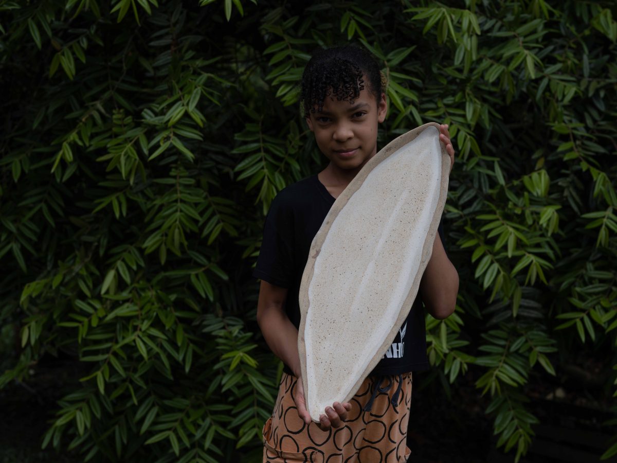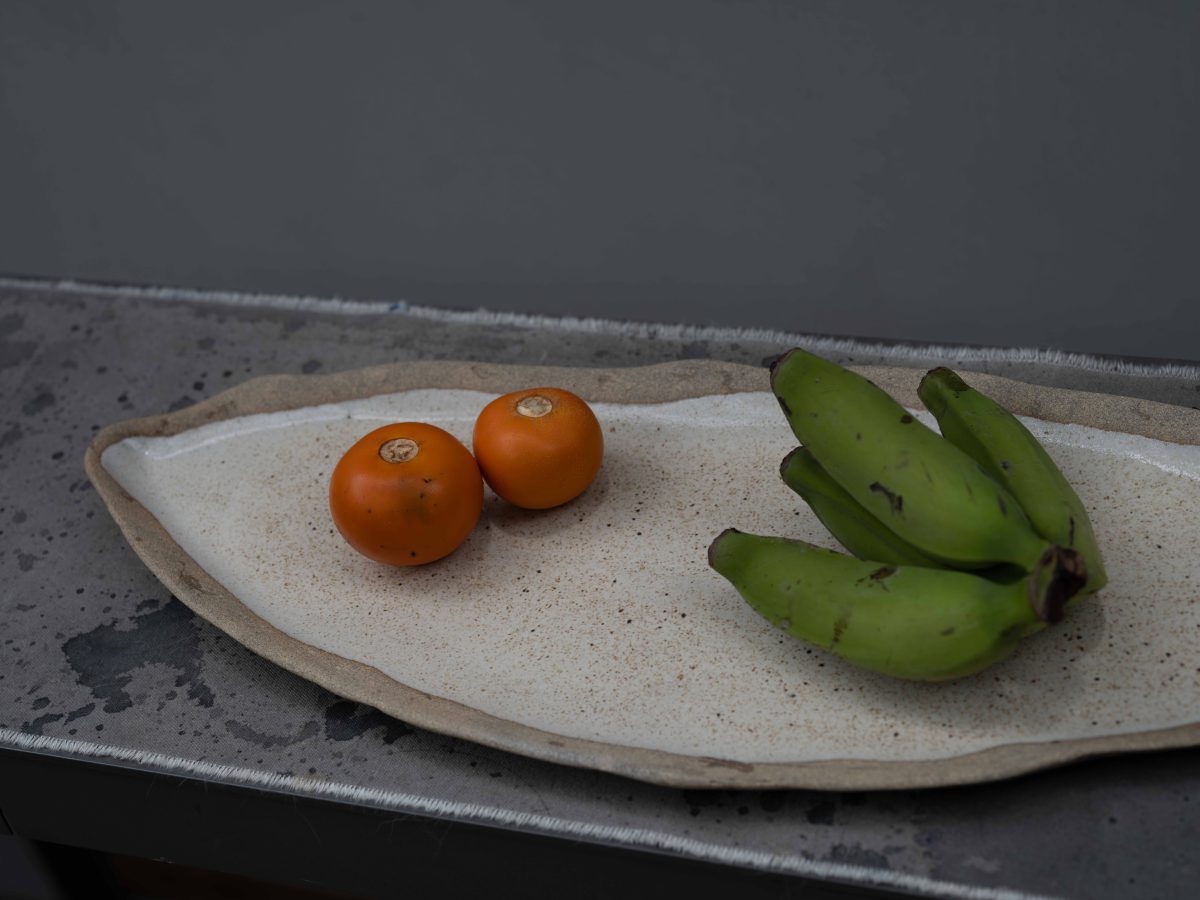 Com uma combinação de duas argilas e finalizada com um esmalte areia, a travessa folha revela em seu formato alongado as nuances da natureza ,detalhes únicos de uma peça que revela o trabalho manual e autêntico;