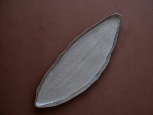Travessa Folha – Peça única -Dimensões : 61 cm de comprimento / 22 cm de largura / 2 cm de altura